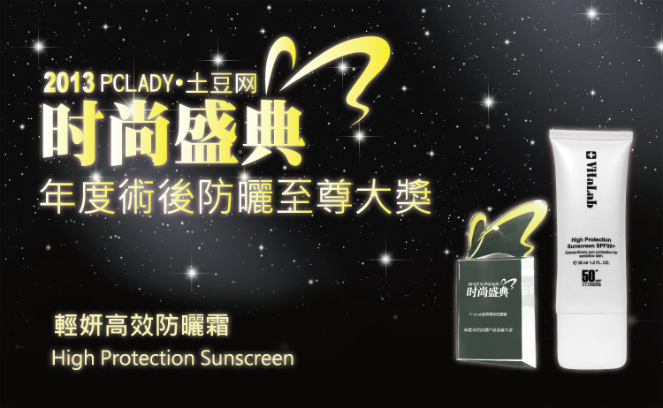 輕妍高效防曬霜SPF50+(術後防曬) High Protection Sunscreen SPF50+ 榮獲2013太平洋時上網PCLADY時尚盛典美容至尊大獎。